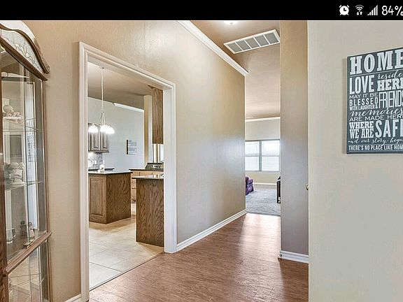 Welcome home! Gorgeous Heartland home located in the Choctaw School District. Features decorator colors, switch controlled fire place, and cable outlets in every room. Light and bright open floor plan. Crown molding, granite countertops, and wood flooring in the main living areas. Oversized bedrooms. Spacious master suite with a walk in Australian closet and a sitting area. Highly rated F5 brand tornado shelter in the garage. Easy access to Tinker AFB, highways, and shopping.