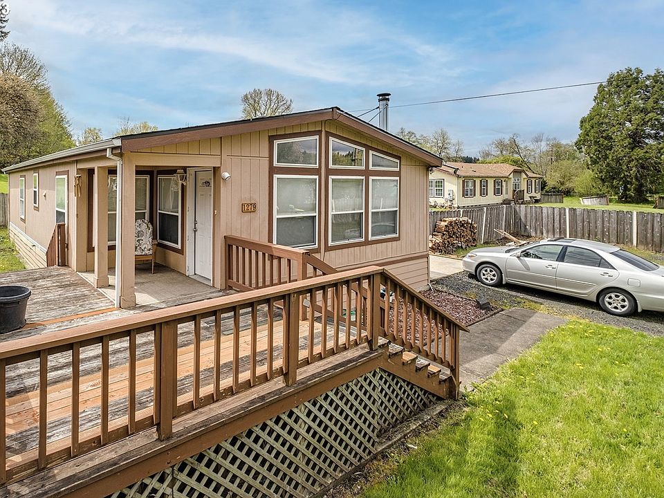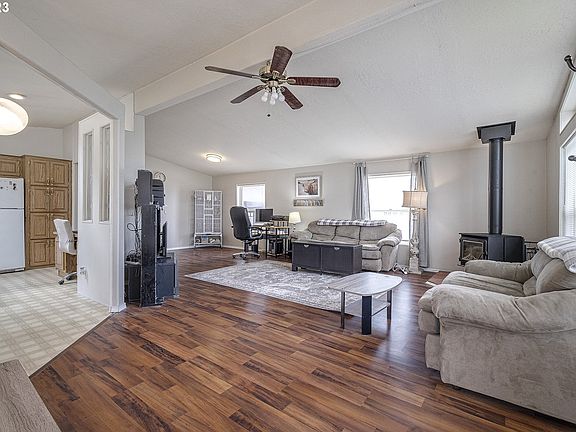 1993 MF 2 bedroom/ 2 bath home on larger city lot and dead-end street. Home features vaulted ceilings, skylights and open floorplan with living room & dining room combined and updated flooring. New roof, new woodstove in 2022, updated plumbing throughout. Kitchen complete with island & plenty of cabinets, breakfast nook & desk area for functional living. Large master suite w/ updated bathroom double stall, walk-in shower & floors. Shop, carport and concrete poured for addition structure. Ample room for parking, large front yard and fenced on two sides, not in flood plain. Come enjoy small town living at an affordable price!