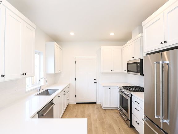 Beautiful 2022 Kendall & James Homes located a corner lot in new Ferry Street Bridge development, 9ft ceilings throughout, Open floor plan, large kitchen, custom cabinets with slow close drawers, SS appliances, quartz counter tops, beautiful laminate floors, large upstairs utility room with cabinets for added storage, main bedroom suite with walk-in closet, tile shower, water closet.