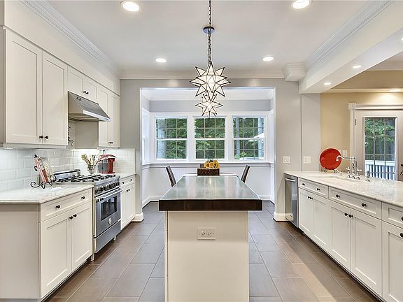 Sensational inside and out! A private 1.5 ACRE LOT, and a gorgeous renovations. Charming kitchen features nook w/ beadboard paneling overlooking beautifully treed lot. 9 ft ceilings on main, hardwoods on both levels, New 2-zone HVAC, gas cooking on a Barzonni stove, a pot-filler, plantation shutters, extensive moldings, new banisters, baths done with Kohler and Pottery Barn fixtures and custom cabinetry, and so much more! Walkout lower lev with full bath, den. lots of storage! Large deck and patio.