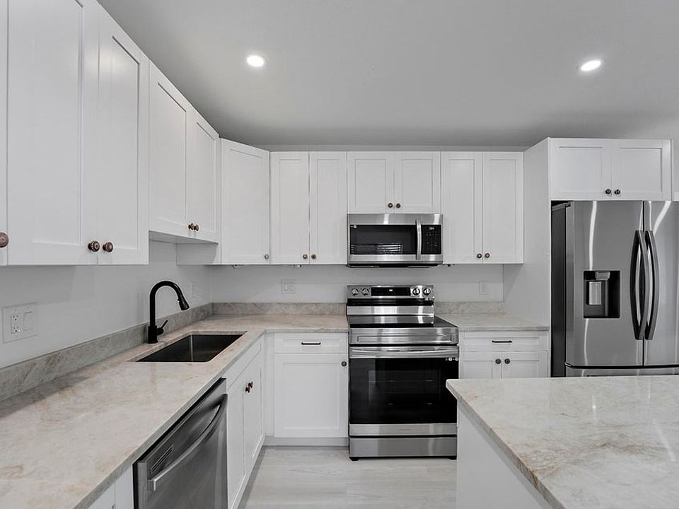 Courtesy of NRH Realty LLC Rare opportunity for a stunning THREE bedroom, 2 bathroom first-floor oasis located within a 4-minute walk to the iconic Singer Island BEACH! This newly renovated unit has been fully updated and upgraded with a brand new kitchen, new appliances including an in-unit washer and dryer, new bathrooms, new flooring, fresh paint, well-sized closets and tons of cabinet space in the kitchens and bathrooms, also features 2 parking spaces! This 4-unit building has been thoughtfully and thoroughly restored so that it is truly reminiscent of its mid-century roots while also feeling like a newly constructed building with new roof, new impact glass throughout, all new A/Cs, new exterior painting & landscaping. Available 11/1/25.