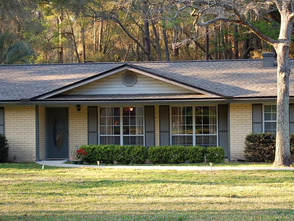 A large lot with mature trees welcomes you home to this well maintained and updated home. The entire home has tile or wood flooring - no carpet! The old floor plan has been opened up to give a wide open feel. A stunning stone fireplace is the focal point of the living room. The huge family room is a recent addition with built-in cabinets, a wet bar with granite, and loads of windows - there’s even room for an office in this open space. The kitchen boasts a large walk-in pantry and a built-in desk area. Newer features of this updated home include: newer AC, brand new architectural shingle roof, newer windows, hardwood floors, newer appliances including a Samsung microwave, Maytag oven/stove and Frigidaire dishwasher. The side entry two car garage plus the large detached garage give you all the storage you need. There’s a window AC unit in the detached garage to keep you comfortable while crafting and outside you’ll find a great covered patio to relax on. This quiet neighborhood is close to shopping, dining and A-rated St Johns County schools.
