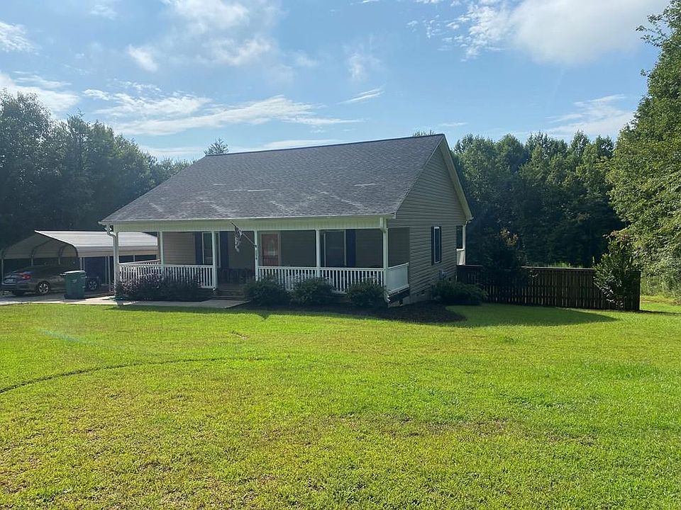 Custom built in 2014 this home has it all from bamboo floors throughout the home, granite countertops, new custom built Island with lots of extra cabinets, freshly painted throughout, smooth ceilings, w/ a large open floor plan that is great for entertaining. This home features an 8x38 covered rocking chair front porch and the same size covered back porch overlooking the fenced back yard that is surrounded by mature hardwoods. New Privacy fence on both sides of the home sitting on an acre lot.