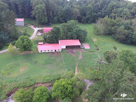 Welcome to Stone Creek Stables! Exciting opportunity to own this century home & property, has changed hands only a few times in almost 200 years. 21.67 breathtaking acres w/abundant wildlife, pastures w/all new fencing, beautiful creek, springs, hiking trails, peaceful privacy. Move in ready for livestock, 4-H, equine boarding. Historic home is beautifully updated to welcome any family; 3-4 bedrooms, 3 full baths, walk out bsmt, covered porch & new windows capture incredible views. Beautiful hardwood floors in office crafted locally from rare cherry/mixed woods. 26x38 bank barn w/covered porch overlooks gorgeous water feature w/16 feet of cascading waterfalls leading to patio for entertaining. Under bank barn is a 4 car garage w/lean-to. Barns have updated electric/new steel roofs/newer water hydrants. Lower 5000 sf structure set for stables w/7+ stalls, drive-thru pole building convenient for animals/equipment, run in, cement floors, loads of storage. Plus a separate chicken coop w/fencing. Close to the home in a wooded alcove is an adorable vinyl sided, steel roof cabin w/wrap-around porch wired for electric, waiting to become your she-shed, man-cave, hunting cabin. Approx 3 planted hay acres produce 700 bales/yr. Both deep & shallow mineral rights available. Away from the road providing plenty of privacy w/over 1000 feet of frontage, yet close to Rt 30 & 172 for easy access to Canton, Minerva, Carrollton, etc. This rare property is move-in ready, dont miss it!