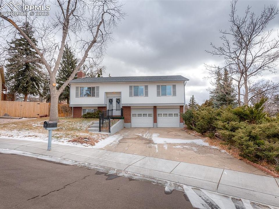 Easy to Show. Open and Bright well-maintained home located on a quiet Cul de Sac. Double door entry. Main level features a living room, formal dining room with a walkout to a 10 X 8 deck, large fully fenced backyard with a storage shed, concrete patio and two brick patios. Kitchen features upgraded cabinets, pantry and all appliances. Private master bedroom with views of Pikes Peak. Two additional bedrooms and a remodeled bath with walk in shower. Lower level features a large family room, a brick fireplace with natural gas insert, laundry room and a three-quarter bath. Oversized two car garage with a work/shop area. Newer furnace, hot water heater, central air, roof and vinyl windows. Views of Pikes Peak and the Front Range.