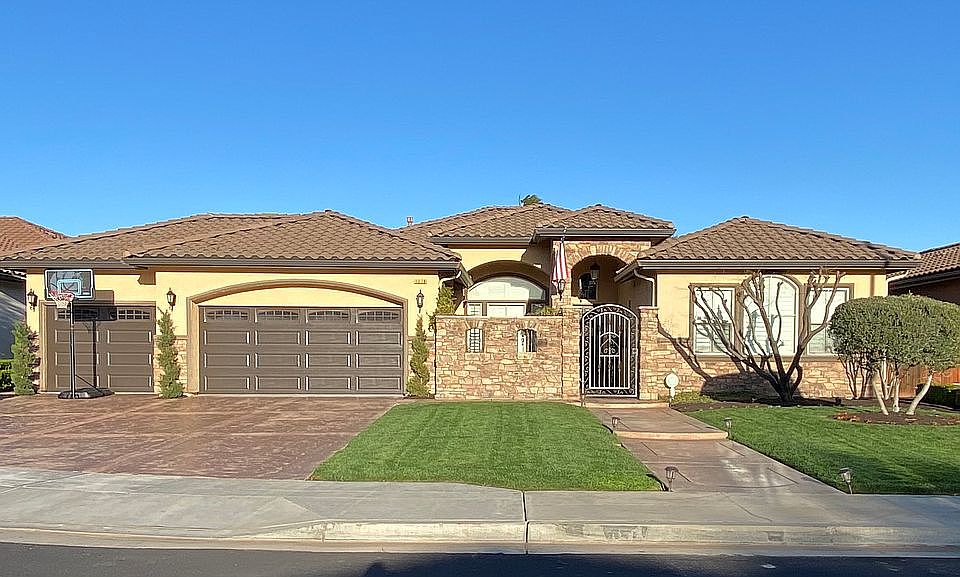This magnificent Joseph Crown Custom home is loaded with amenities! Features include: a beautiful entry courtyard with stamped and stained concrete, upgraded paint, carpet, tile and granite counters throughout, hand textured walls, crown molding and oversized baseboards throughout, custom cabinets, a custom built-in entertainment center, the living room, master and backyard are wired for surround sound, master bedroom has separate sitting area, dual shower heads in the master bathroom, large laundry room, lots of storage, 3 AC zones, tankless water heater, drive thru garage, outdoor fireplace and so much more! You really need to see it to take it all in. Homes in this neighborhood rarely go up for sale, so don't miss your opportunity to own on one of the most exclusive streets in Clovis!