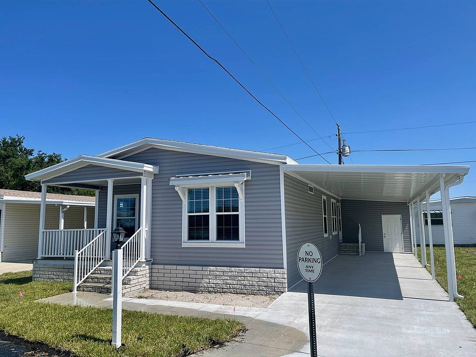 Located in Colonial Colony South a 55+ Community, this is a new manufactured home. The land lease payment is 768.00 per month for 2023. Included in the land lease payment is city water, sewer, trash pickup, recycle pickup, irrigation water, mowing, standard cable, use of both pools, fitness center, clubhouse and recreational facilities.