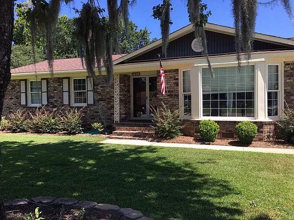 Renovated/updated 3 bedroom 2 bath brick ranch in Hanahan, SC. The Berkeley Hills 4/5 neighborhood is friendly with lots of dog walkers and neighbors who wave every time you ride by. Great Hanahan schools are close as well as Divine Redeemer Catholic Church located at the entrance to the neighborhood. On entry to home there are double wooden doors that open into the farm-house style foyer with a grey shiplap accent wall. The kitchen has white, shaker-style pull-out drawer cabinets with beautiful grey/blue granite. Subway tile and pendent lights add to the Farmhouse style. Appliances include refrigerator, dishwasher, gas stove, oven and microwave. The kitchen space also has a breakfast nook with double windows where you can enjoy your morning coffee, browse the internet, or watch the kiddos and dogs play in the fenced back yard. The living area has a large bay window with plantation blinds and is connected to the foyer. The open floor plan gives view from the kitchen into the dining room, which could also be used as a sitting or living area. The sliding glass door and doggy door allows easy access to the back yard. The laundry room is located off of the kitchen and has a door that leads to the garage. There are 3 bedrooms. The Master can accommodate a king size bed and larger furniture. The master bathroom has new grey/blue tiled flooring with the bath/shower/toilet separated by a door. You will find a farmhouse style double sink vanity and vessel sinks accented by small shelves made from reclaimed, 100 + year old barn wood. Across from the vanity is the walk-in closet. Both additional bedrooms are ample size with easy access to the hall bathroom featuring a farmhouse style white vanity and a shower tub combo. (New grey tile and toilet. not shown in pics). Laminate Flooring is throughout home with the exception of tile in the bathrooms. Plantation blinds are throughout. The house has been painted in the trendy Agreeable Grey and Mindful Grey colors.