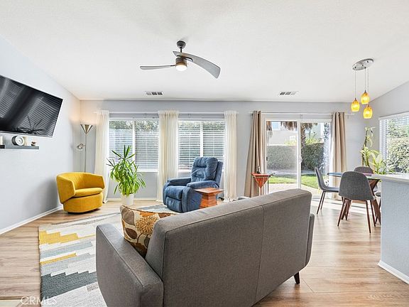 Discover the perfect blend of comfort and style in this inviting Single Story 3-bedroom, 2-bathroom home located in the tranquil Sundance South community. With a host of recent upgrades and desirable features, this residence is ready to welcome you home. Modern Upgrades: Step inside to find brand new laminate flooring that adds a touch of contemporary elegance to every room. The remodeled kitchen and bathrooms offer a fresh and modern feel, making daily living a delight. Appliances Included: Your new home comes complete with Stove, Dishwasher, Microwave an Refrigerator, eliminating the hassle of buying and installing new ones. Move-in ready for your convenience! Ample Space: Park with ease in the spacious 3-car garage, providing plenty of room for vehicles and storage. The low HOA fee of just $47.00 a month ensures that you can enjoy community amenities without breaking the bank. Community Perks: Sundance South offers residents access to community parks, providing a perfect backdrop for family picnics, outdoor activities, and social gatherings. Low Mello Roos: Say goodbye to high Mello Roos fees. This property boasts low Mello Roos, helping you keep your housing costs manageable. Expansive Backyard: Enjoy the great outdoors in your generously-sized backyard. It's the ideal canvas for creating your dream outdoor oasis, whether you envision a lush garden, a play area for children, or a serene relaxation spot. This Sundance South gem won't last long. Don't miss the opportunity to make this beautifully updated home yours.