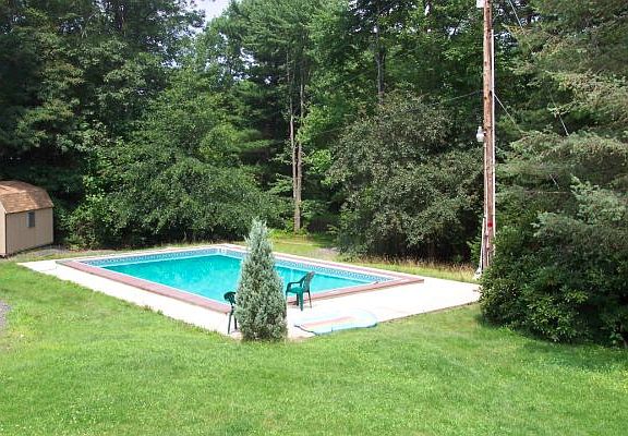 Located on just under 3 acres in the mountains and woods. Home has an indoor hot tub and outdoor in ground swimming pool. Also, stream and natural pond with koi. House has two separate entrances so could be used as a rental or in-law quarters. Each side has separate kitchens. Beautifully landscaped with mature trees and covered barbque/outdoor campfire area. Each side also has loft rooms overlooking the living area.