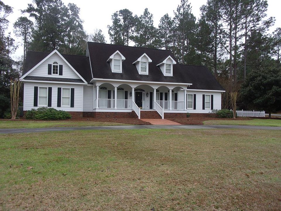 Beautiful Hardy Board siding 4 bedroom/3 bath home located on a .79 acre lot with 3615 SF heated/cooled. This home has 2 car attached garage; Large front and back covered porches with a large patio surrounded by brick resting wall; Fenced in back yard; zone irrigation system; Kitchen has attached breakfast room, separate dining room; Living room has gas fireplace with built in mirrored book shelves on both side; flooring consist of tile in kitchen, laundry and bathrooms; carpet in living area and bedrooms, foyer has wood flooring. This home is a must see to fully appreciate the beauty.