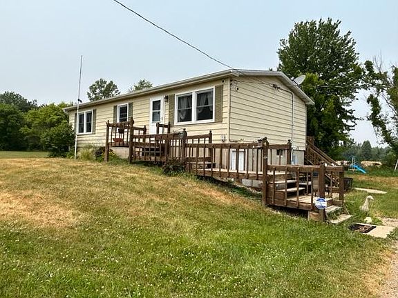 Nice country Modular home just outside of the City limits. Good isolated feel with over 380 ft of road frontage! Inside there's 3 bedrooms, a large bath, laundry room, a good sized dine-in kitchen, big living room and a 10x18 finished 3 seasons sun room! Outside there is a 24x32 pole building garage w/ 9 ft ceilings. This is a good safe place for young children due to the dead end street.