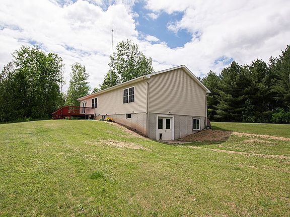 20 partially wooded acres with multiple ponds. This property offers a 3 bedroom, 2 bathroom home, 1554 sq ft main level with a full open unfinished walk out basement. Sit on your back deck and enjoy nature at its best with a large back yard looking out to one of the many ponds. Refinished 2 car attached garage. Home located on a paved road just minutes from town.