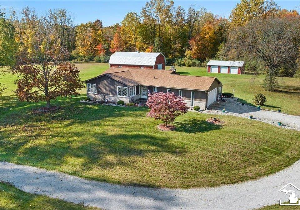 Nestled in Raisinville Twp, this meticulously maintained three bedroom ranch sits gracefully on 17 acres of sprawling land. Boasting a charming screened-in room off the back, it offers tranquil views of the surrounding woods. With one full bath, one half and a bonus shower in the basement,convenience meets comfort. Complete with a Pole Barn (60 x 35)with a car lift and an additional 3 car heated garage ( 40 x 25) , this property has ample space for storage and hobbies. Having had only one owner, this home exudes a sense of pride and care in every corner.Newer roof, furnace, kitchen, bathroom, carpet, fireplace door and logs and more in the last 10 years. This house has an attached garage and first floor laundry room for convenience. The unfinished basement has a ton of potential.