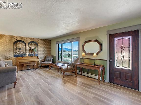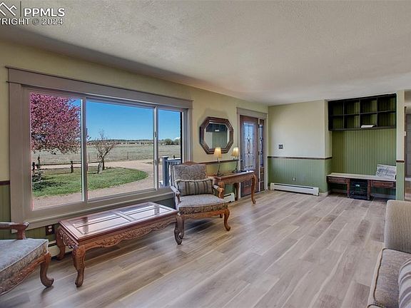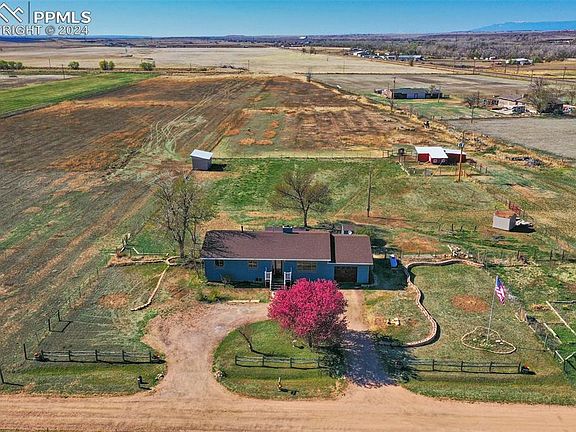 If you're seeking rural tranquility and modern comfort this 5-bedroom farmhouse nestled on 13.95 acres of serene land may be the home for you! From the moment you step inside, you're greeted by a sense of warmth and welcome, inviting you to unwind and savor the peaceful surroundings. The living room includes a wood-burning stove to indulge in on chilly nights year-round. Further on to the kitchen, you'll quickly fall in love with the farmhouse charm and walk-out dining area to the back deck for ample entertainment space. Down the hall, you'll find the master bedroom with an additional two more across the way. A 3/4 bath adjoins the master bedroom with a stunningly tiled free-standing shower. Another 1/2 bath with a classic clawfoot tub can be your escape when the world gets busy! Continuing to the basement is a family room with another wood-burning stove and bonus media or theater room for your own or guest entertainment. In the laundry room, you'll never run out of space for clean (or dirty) clothes. A final two bedrooms on the basement level allow everyone to have their privacy. With zoning for horses and livestock, it's a haven for animal lovers. Outside you'll have incredible views such as Pikes Peak and more than enough property to home your livestock. A chicken coop, along with hay storage, a tac shed, and several fenced areas to separate animals is included. Don't miss out on this opportunity to own 13.95 acres just on the outskirts of town!