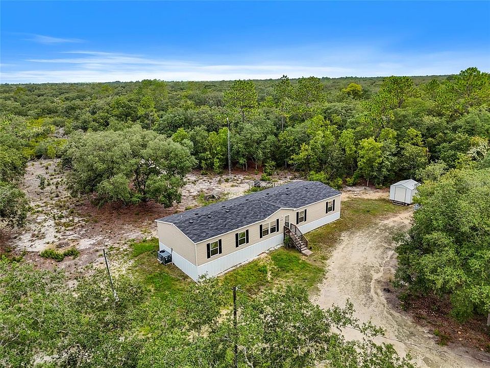 **MOVE-IN READY** manufactured home on 10 lush acres. Built in 2021, this spacious 4-bedroom, 2-bathroom home offers nearly 2,000 square feet of living space with an open floor plan and split bedroom layout. Featuring separate living and family rooms that flow into the kitchen and dining area, this home provides ample space for relaxation and entertainment. Bedrooms are carpeted, while vinyl flooring extends throughout the rest of the home. The expansive primary bedroom can accommodate an office, reading area, or nursery. Faux brick walls add a charming farmhouse feel. Outside, enjoy two sheds and a Culligan water filtration system. The wooded lot ensures peace, quiet, and privacy. Benefit from lower Levy County taxes, well & septic so no water bill, and **NO HOA**. There’s plenty of space for animals and gardening. Conveniently located in Bronson, just 30 minutes from Gainesville.