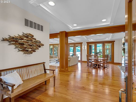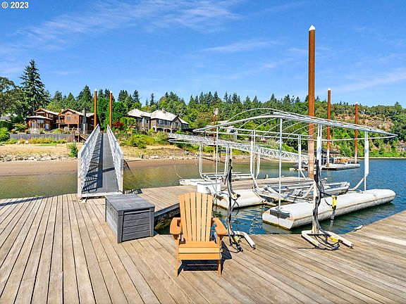 This one ins SPECIAL! Vacation from home everyday in this exquisite Lake Oswego/ Dunthorpe Willamette River Front Estate.Privacy and space abound in this custom, NW Craftsman with luxury at every turn.Gated entrance, large level upper and lower lawns, stunning pool with spa/fountain overlooking the Willamette.Newer $175,000, elevated gang plank leads to oversized dock with boat lift and jet ski parking.Interior has been extensively remodeled/ updated with attention to luxury and detail- gourmet kitchen with VG Fir inset cabinets, granite counters, butcher-block island, raised eating bar for 8, a 6-burner Wolf gas range, and centered between large dining family rooms with expansive river views.Butler's pantry off kitchen with 2nd dishwasher, 2nd fridge, a warming drawer, and food and appliance storage galore- an entertainer's dream! 5, ensuite bedrooms up, 1 ensuite bedroom on main, plus main floor den/office and upper executive office.Amazing upper bonus room with rock climbing wall, volleyball net and built in football throw wall! Primary suite has recently be renovated with new wool carpet, new gas fireplace mantel, new, heated tile flooring in bath and custom built-in closet that is sure to impress! Too many upgrades to mention, you must see this in person to truly appreciate all that is offered~