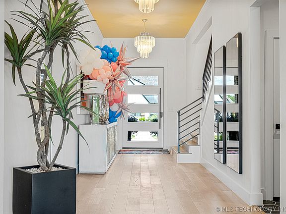 Mostly downstairs living with two beds down, 2.5bath down, study/formal and butlers pantry down. One bed and game room up, jack & Jill bath. Features include: solid hardwoods, waterfall quartz island, glass sliders onto patio, under cabinet lighting, over -sized master suite connects to closet & private laundry. Master planned community with trails, ponds, park, & pools in Bixby schools