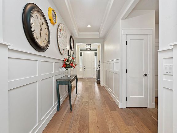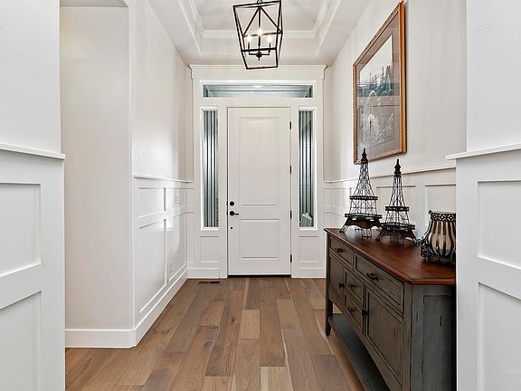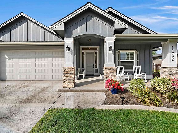 Better than new! This immaculately maintained single level home is situated on a beautiful, private lot w/ park-like views & no direct back neighbors. Ideal for outdoor entertaining or simply relaxing on the tranquil patio. Thoughtful split floor plan w/ chic elegance & an efficient use of space throughout. Bright, spacious great room w/ exposed beam ceiling, designated built-in workspace, gourmet kitchen w/ knotty alder cabinetry, quartz countertops, gas range, double ovens, huge island/breakfast bar, & large walk in pantry. Office/flex room conveniently located off main living area w/ patio access. Luxurious primary suite that opens to the back patio, dual vanities, tiled walk-in shower, tub, walk-in closet, & laundry room attached. Roomy 3 car garage w/ ample storage space & epoxy flooring, plus a 6’x8’ outdoor shed for all of your additional storage needs. Community pool & playground down the street, as well as the new South Meridian YMCA. Excellent location! Shopping, dining, schools and freeway nearby.