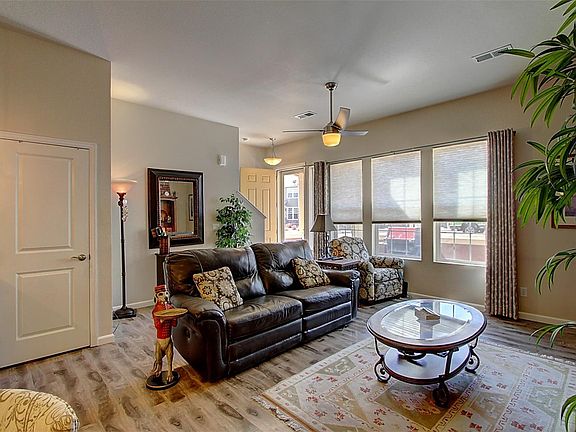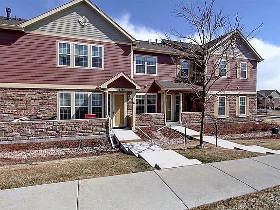 Fabulous middle-unit, 2-story townhome in Thornton! Front porch welcomes you to 3 Bedrooms and 3 Bathrooms. Main level has open floor plan with Living Room, Dining Room, and Kitchen. Kitchen features gorgeous granite-slab countertops and stainless-steel appliances with additional countertop seating. Upper level has 3 Bedrooms, including the Master, which features a private 4-piece bathroom and his/her closets. Set up office in the spacious upper-level Loft! Laundry Room is conveniently located upstairs near the bedrooms! Oversized 2-car attached garage! Great home! Great location! Walk to parks, ponds, and trails! Call now to schedule your personal showing!