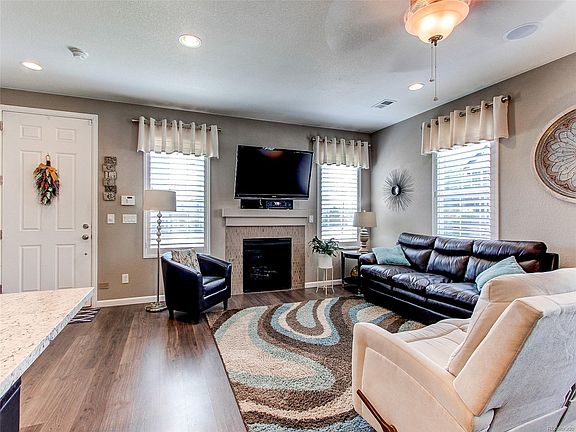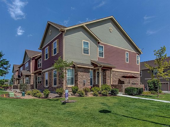This amazing 3-bed/2.5-bath townhouse features an open floor plan, a gorgeous, well-kept kitchen with stainless steel appliances and a large attached 2-car garage with overhead storage racks. 2 additional parking spaces in driveway. End unit! Former model home! Granite counter tops; 42" cherry kitchen cabinets. Upstairs features 3 bedrooms with 2 full bathrooms, a sunny loft/office space, linen closet and laundry room -- front load washer and dryer included! Master has 2 walk-in closets; 2nd bedroom features built in book shelves; ceiling speakers on both floors (electronic receiver included). Ceiling fans in all 3 bedrooms and on the main floor. Levolor honeycomb blinds upstairs; wood California shutters downstairs. Gas FP with fan in Living room. AC only 3 years old. Side by side refrigerator 4 years old. Enclosed storage area and water spigot in garage. Large front patio -- perfect for summer BBQs. Close to shopping, parks and trails. Easy access to I-25, I-76, E-470, Denver, Boulder, DIA. Great location near new light rail so you can be downtown in only 27 minutes! No monthly HOA, it is included in the taxes.