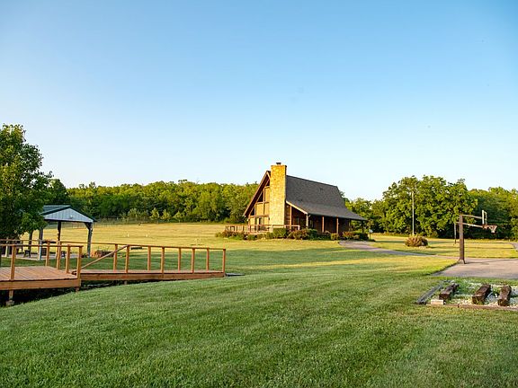 A great home or weekend retreat with a beautiful rustic lodge, a barn, high fencing, raised garden beds, hay barn, a 4 stall horse barn, and 4 ponds.