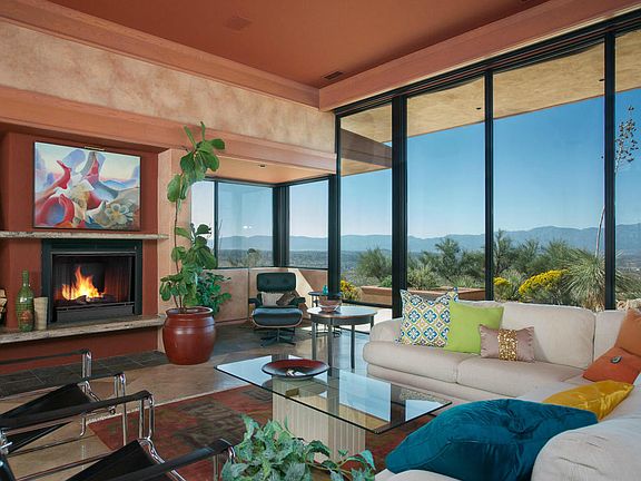 ENDLESS VIEWS - ULTIMATE PRIVACY, Frank Lloyd Wright inspired home. National High Desert Forest Service as your nearest neighbor. ALMOST 12 HILLTOP ACRES - This is the luxury of nature, where the environment is not just a back drop but an essential component of the beauty of this modern Frank Lloyd Wright inspired home. A perfect floor plan with casual living in mind. Comfort, quality & craftsmanship in the DESIGNERS OWN HOME; meticulously & thoughtfully designed by Robert Groat; Three bedrooms, office, family room, spacious laundry,surprise powder room, 3 car garage, chefs kitchen, EVERY ROOM open out to a patio, 2 fireplaces inside. High design low maintenance fireside outside sanctuary & a moon rise pavilion. Exquisite Property - Rarefied Setting.