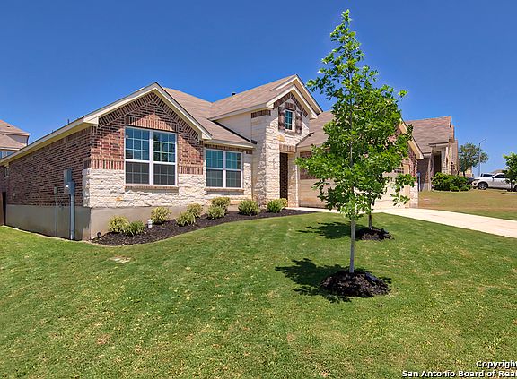 This is a beautiful one-story home with a wide front yard! The Grantham floor plan is the perfect home for any family with open living to suit all needs and lifestyles. Whether you want to have quiet family time or entertain family and friends, this house will deliver. It features double ovens in the gourmet white kitchen, upgraded tile throughout living areas, wood floor in the formal dining room, beautiful wood deck, outside shed, and extra garage storage. This home is located in the desirable Alamo Ranch Community. One Living Area; Liv/Din Combo; Separate Dining Room; Two Eating Areas; Island Kitchen; Breakfast Bar; Walk-In Pantry; Utility Room Inside; Secondary Bedroom Down; High Ceilings; Open Floor Plan; Cable TV Available; High-Speed Internet