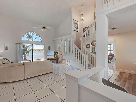 Exquisite three bedroom 2.5 baths house is a rare find on Lake Wellington. Embrace tranquil waterfront, living at its best with serene views from almost every room. The spacious living areas feature large windows, flooding the rooms with natural south Florida sunshine. The kitchen is equipped with stainless steel appliances, solid wood cabinetry, and a breakfast area that overlooks the waters of Lake Wellington. The large primary bedroom boasts large window, sliding doors, walk-in closet, and its own en ensuite. Two additional large bedrooms upstairs provide ample space for family or guests. The loft offers unique character and versatility, providing ample opportunities for creative customization. Meticulously landscaped grounds offers a peaceful oasis lined with fruit trees and native flowering shrubs that provide ultimate privacy. The gated community of Madowland Cove is a coveted location that exemplifies Florida living at its finest. Seize this rare opportunity to embrace lakeside living and make everyday a waterfront retreat.
