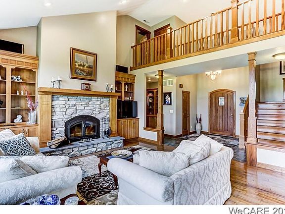 Custom-built home on Hickory Sticks Golf Course. CHEF'S KITCHEN w/Wolf gas range, Sub-zero refrigerator, Hickory cabinets, Corian counters, stainless steel appliances. Main floor also features: master suite, guest suite w/handicapped accessible bath, great room w/woodburning fireplace, custom built-ins, laundry room & half bath. Second level features study w/half bath & concrete balcony w/golf course views & bonus room. Lower level features kitchenette, media room, 2 bedrooms & full bath. Geothermal radiant zoned heating for Main Level & Basement, electric f/a heating system for 2nd level.