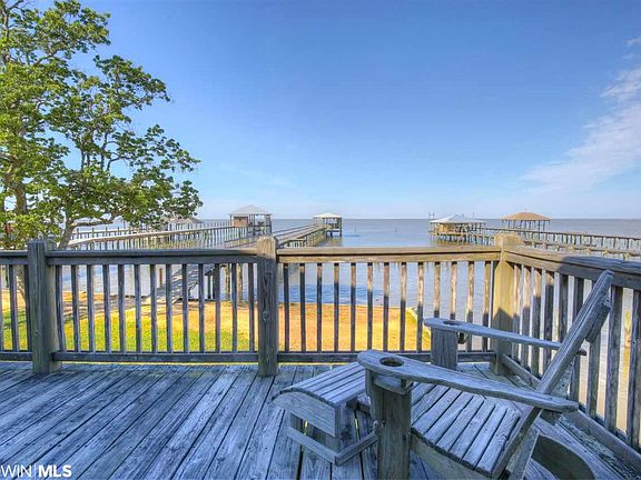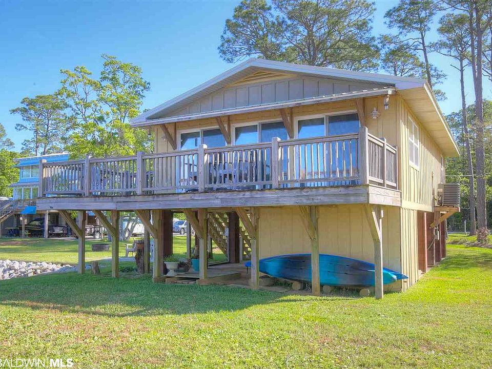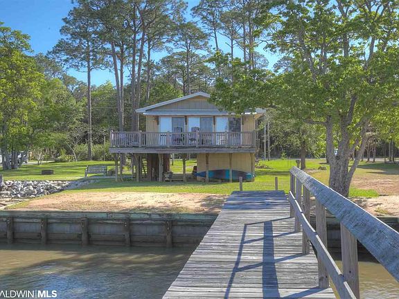 Life on County Road 1--beautiful sunsets, minutes from Fairhope, retreat as a week-ender or tremendous room to expand--100 front feet of great privacy. Raised cottage with pine floors throughout, updated bath and open floor plan. Deck that expands the width of the home perfect for entertaining. Underground sprinkler and nice landscaping. Walk out to the great pier with storage and fantastic boat lift. This home is your heaven away from your busy life. The property is the raised home on 50 feet and the 50' lot to the north which is beautifully landscaped. This is a tremendous value!!!!