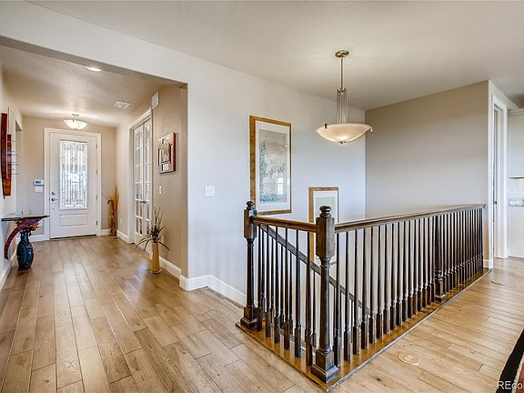 Skyestone 55+ one of a kind Contemporary Home with outstanding views. Come see this gorgeous 3400+ finished sq ft with walkout basement! This home sits on top of the community with expansive views from many of the rooms up and downstairs. A plethora of upgrades including extended wood flooring, 8 ft doors throughout, open floorplan, tons of windows offering natural light on the main and walkout basement level, finished basement perfect for entertaining or having guests, upgraded paint, tile and countertops. This home boasts a gourmet kitchen with upgraded stainless steel appliances, built-in refrigerator and large island perfect for the eat in breakfast bar! Extra large walk in pantry with a ton of shelves, custom stainless hood, and upgraded cabinets. Silhouette Shades throughout, designer paint and tile and upgraded architectural carpet. Stained glass front door, private with secluded patio and covered back deck! French doors leading to a large den/office with wood flooring, extra linen closets, mudroom with bench, large laundry room with utility sink several custom cabinets added. 2 car garage and an additional separate one car in a separate bay. Stunning custom gas fireplace on main floor in cozy living room area with custom surround tile.Large Main bedroom with stupendous 5 piece bathroom with large walk in shower, 2 separate sink areas, designer tile, large walk in closet with custom closet organizers and an additional closet added in the bedroom along with a linen closet. 2nd bedroom has a coffee bar/wet bar, ensuite 3/4 bath perfect for guests wanting their privacy. The finished basement prides itself on a 3rd bedroom with closet and revolving door to a storage area, 3/4 bath and large recreation room with gas fireplace, many storage areas and plenty of room for a fitness area, ping pong, pool&entertainment rooms. Radon& humidifier included, concrete lower patio and walkway, fenced in yard & large area between the home & neighbors. A real winner!