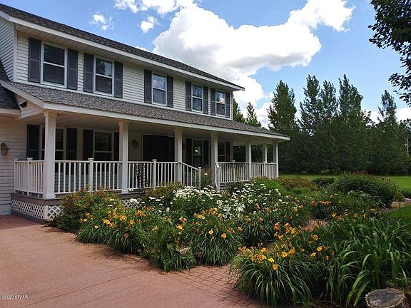 Navigate through the real life virtual tour and check back for the photos. Spacious and open, this 4 bedroom 3 bathroom home will impress you inside and out. From the welcome feel of the massive wrap around porch, a foyer with its upper level balcony view and open living spaces inside, to the gorgeous 2 acres of year round panoramic views up and down the Red Lake River.