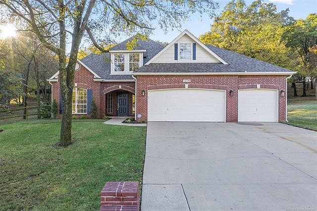 Completely remodeled home on acre (m/l) in desirable Sunrise Ridge. Fresh paint & fixtures throughout, brand new hardwoods on main level. Separate office, formal dining. Kitchen featuring new cabinetry, island, quartz counters & appliances is open to breakfast nook and family room with fireplace. Master on 1st level, gorgeous redone ensuite bath with heated floors. Large gameroom & 3 bedrooms up. Amazing vaulted back porch with lovely lot views. 3rd garage bay is enclosed & heated/cooled. Bixby Schools.
