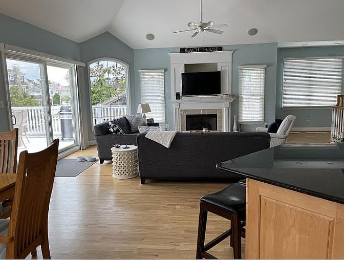 Do not miss this opportunity to own a gorgeous, custom, upside down, Tom Welsh home. This 3 story, 5 Bedroom, 5 full bath, single family home is a highly sought after design with plenty of room to entertain friends and family. The 1st floor consists of a family room with sliders opening to the 1st floor deck, which is shaded by the 2nd floor deck. There is also a hallway full bath, big utility room with W/D and 2 bedrooms, one with its own private full bath. As you walk up the stairs to the second floor, you will be greeted with a bright and cheery great room with hardwood floors, consisting of a living area, dining area and kitchen, with plenty of light and beautifully integrated vaulted, cathedral ceilings. Off the living area are sliders to the spacious 2nd floor deck, perfect for BBQ's and relaxation. There is also another hallway full bath and 2 bedrooms, one having a private full bath. The third floor is solely for the Master Suite making it extremely private. It has a roomy walk in closet, master bath with jacuzzi and a private deck off the side. The home also has an outside shower making it easy to clean up after the short walk back from the beach! The property's location is a bonus as it is near a recreation park and fields, a playground for the kids, a short two and a quarter block walk to the beach and 10 blocks from shopping and dining. Situated on a side street away from the main road traffic, it's an ideal location to enjoy all the quiet moments a beach life has to offer!