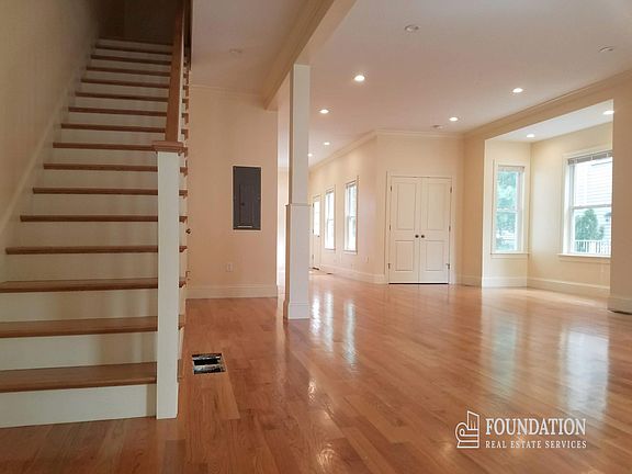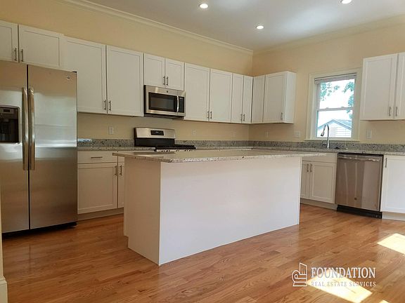 This is an enormous apartment. There are 3 very large bedrooms on the 2nd floor (one of which has it's own bathroom), the other two share a bathroom. The third floor has two fairly large bedrooms (one of which has a massive walk-in closet / office with a window. The two top floors share a bathroom. The ground floor is a large enough layout to have a dining area and a living room area. The kitchen has granite counter tops with stainless steel appliances and is an island layout so there is plenty of room for sous chefs in the kitchen.