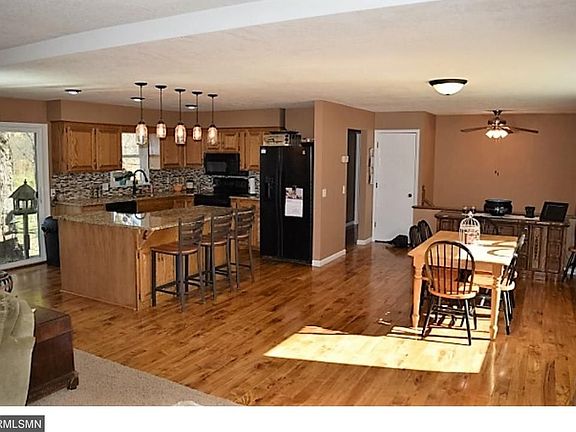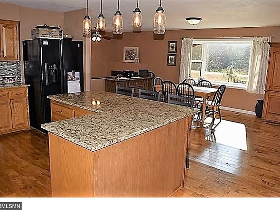 Nicely updated 6 bedroom, 2 bath home on over 4 acres! Home features an open floor plan, hardwood & tile floors, huge eat-in-kitchen with center island, granite countertops & tile backsplash. Main floor laundry, bay window, walk-out lower level, 2 car attached garage & more. Mature corner lot with pond, above ground pool, storage shed & dog kennel. Completely finished 36x48 shed with 10' doors, bathroom, office, floor drain, laundry hook-ups & storage above.