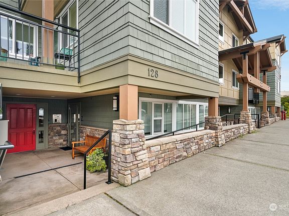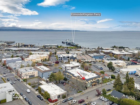 Perfectly located in the Bowl of downtown Edmonds and within walking distance to everything Edmonds has to offer. This gorgeous, upscale, pet friendly elegant condo is a rare find. Built in 2004 the condo boasts: 1324asf, 2 bedrooms, 2 bathrooms, refinished Maple hardwood flooring, brand new carpeting, incredible granite slab, stainless appliances, built in speakers and sunrise views of Edmonds. Large Primary bedroom with spacious primary bath w/double vanity surrounded in Travertine Slab, extensive tile, walk-in closet, laundry w/cabinets, deck to enjoy the sunny southeastern exposure, two secured parking spaces, and private storage. Immaculate! Don't miss this gem.