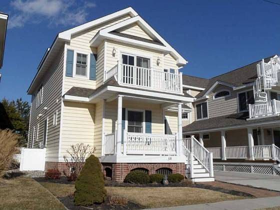 Beautiful single family home located less than one block to the beach, with ocean views. This home was totally rebuilt from the ground up with innovative architectural design and quality materials in 2005, all new electric, plumbing, like a totally new home. Special features are the two rear covered porches, one off the 2nd floor living room/kitchen area and one off the 1st floor family room, as well as reclaimed wormy chestnut hardwood floors. This home offers four bedrooms, three full baths...