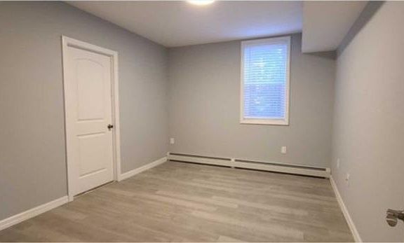Totally renovated last year . Central Air and baseboard. It's located on the Ground fl of a 3-family house. Laundry in the unit and parking is available in the driveway Tenants pay all utilities. One parking in the driveway is included in the rent. No Pets allowed. 1.5 month security deposit, 1 month rent, and 1 month broker fee required at the signing of the lease.