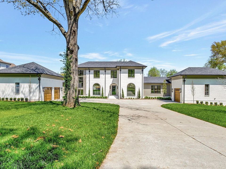 Elegant new construction on one of coveted Belle Meade Highlands' largest lots. A 3 car motor court provides a grand promenade to European inspired architecture. First floor offers formal and informal dining rooms, laundry and mudroom, designated study, wine room/secondary office, covered porch, and owner's & secondary suites. The chef-inspired kitchen offers Wolf/SubZero paneled appliances, hand scraped plaster hood, custom cabinetry, and a scullery with paneled appliances discreetly tucked behind pocket doors. Primary suite offers a sitting area with floor to ceiling windows, spa bathroom with heated floors, and a must-see bespoke dressing room with ancillary laundry hookups. Upstairs you'll find 3 additional bedroom suites with walk-in closets, recreation room, and 2nd laundry room. Easy entertaining with upstairs and downstairs fully-equipped wet bars. The subtle glow of gas lanterns, designer fixtures, and Pella casement wood windows provide lighting that addresses every need, while 12-foot ceilings provide a sense of grandeur. Hand painted wall treatments in formal dining room and 1st floor powder. Beams, ceiling details, built-ins, hand scraped plaster fireplace, white oak sand and finish floors, and decidedly stylish accents throughout. Extra wide parcel is one of the largest in the neighborhood with full irrigation and space for a future pool. Fantastic floorplan with prime walkability to Percy Warner/Cheekwood parks and neighborhood favorites Something Special, Sperry's, Escape Day Spa, and Bistro 360.