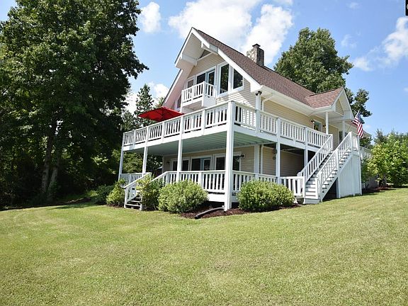 Porches! Porches! Porches! Situated on nearly an acre, This Lake Murray WATERFRONT home boasts 135 feet of water frontage on a PRIVATE DOCK w/ GAZEBO, BOAT ramp, recent Rip Rap shoreline, & YEAR ROUND PANORAMIC deep water views from multiple PORCHES. Decorated with a french country/ rustic style, you'll find real HEART PINE floors, STONE WOOD BURNING FIREPLACE & a SOARING CEILING with a WALL of NATURAL LIGHT overlooking the waterfront vista. STAINLESS kitchen w/ BAR, LG EAT-IN OPEN to GREAT RM- BED 2 & 3 on Main, Master up, and FLEX space in WALKOUT basement, & Water filter system. This is a MUST SEE! Sqft approx; buyer to verify.