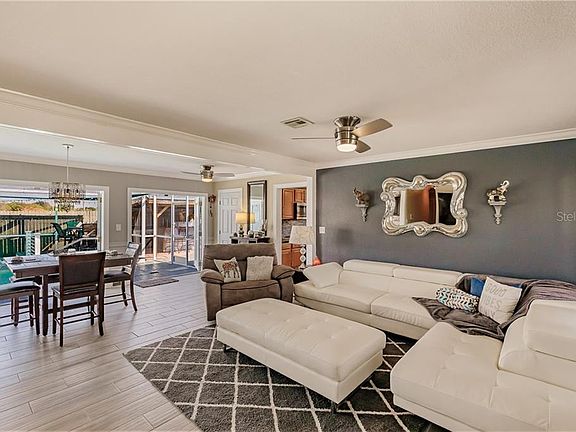 Come see this amazing WATERFRONT POOL HOME with easy access for your boat to the gulf and some of the most beautiful beaches in Florida. At the end of a quiet cul-de-sac, this property features 3 bedrooms, 1 bathroom on a huge .42 acre lot. The home also has a SCREENED in ground heated POOL, JACUZZI tub with outdoor shower, fenced in yard and the pool area, a boat DOCK and LIFT ! You will never need a get away from this beautiful Florida oasis. When you arrive, you are greeted with an honorable flagpole right in front, a long driveway, and a beautifully landscaped front yard. Inside, you'll walk into the open living room and dining room with a gorgeous chandelier, built in lighting, ceiling fans, an electric fireplace built into the wall, a Music system throughout whole property, and crown molding that adorns the entire home. The dining room has a wet bar with mini fridges to keep anything you may need close by. The kitchen comes equipped with lots of cabinet space and matching stainless steel appliances. Walking outside to the pool area, through one of the 3 double doors along the back of the home for lots of fresh air, the entire area is screened in, and you'll find a covered area with counter space and hookups for an outdoor kitchen, with an outdoor sink for convenience, and an area with an outdoor TV! The pool has a great heating system and is salt water, and sitting right beside it is a tranquil koi pond. Next to the pool there is a fire pit area great for entertaining guests. Don't forget the separate private area with a jacuzzi tub and shower!! Outside of the pool screened area, is a fenced in section ready for your four legged friends with built in raised garden boxes along the inside of the fence for gardening. There is tons of space in the rest of the yard, including a spot for an RV equipped with all of the hookups for electric (no septic for RV). At the back of the yard is a canal that leads out to the gulf, which includes your own boat dock with electric and water supply! The boat lift will hold up to 13,000lbs. Some furniture is negotiable for purchase if any is wanted but not included in listing price, outdoor kitchen/grill is not staying with home. In the last 2 years, this home has has a complete remodel! Lets list some of the brilliant new additions: 2021 Remodeled bathroom, new gutters and fascia 2020 exterior and interior paint/remodel, new double concrete driveway, updated/remodeled laundry room, all new appliances including new air fryer oven, converted pool to saltwater, new efficient pool heater, new floors wood & tile, trim, crown molding, all interior doors and closets, all new cabinets and kitchen remodel 2019 new water heater, HVAC, partial new privacy fence 2018 new 13000lb boat lift and new dock with water and electric