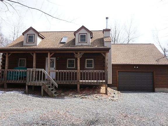 DREAMING ABOUT A LOG HOME? Step right up on the covered porch and open the door to your NEW HOME! Presenting on the market for the first time, this BEAUTIFUL CAPE COD STYLE CUSTOM BUILT LOG HOME with a two car garage in an amenity filled community. EXCEPTIONALLY MAINTAINED this house is coming turn key. CLOSE TO ALL THE POCONOS ATTRACTIONS AND COMMUTER FRIENDLY! Features include an open floor plan for great entertaining, enclosed porch to enjoy the outdoors inside, granite kitchen countertops, cathedral ceilings, wood stove and a large loft, with 3 BEDS AND 2 BATHS on a lovely lot. THIS IS THE PERFECT MOUNTAIN GETAWAY!