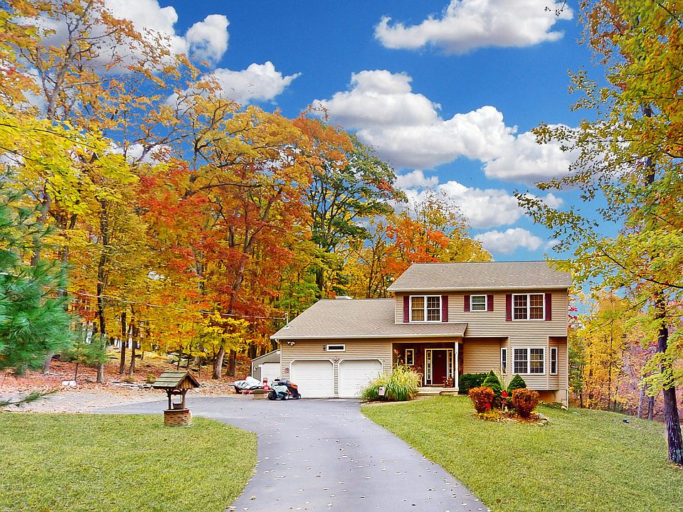 WELCOME TO YOUR NEW BEAUTIFUL 4 BED, 2.5 BATH 3,437 TOTAL SQFT. COLONIAL ON 1.05 ACRES IN THE SOUGHT AFTER POCONO MT. WOODLAND LAKES HOA LOCATED ONLY MINUTES FROM DOWNTOWN MILFORD AND ONLY 2.0 HOURS AWAY FROM NYC. THE SCHOOL DISTRICT IS HIGHLY RATED. There is spectacular hardwood flooring and ceramic tiles throughout the first floor along with 9 ft. ceilings. Enjoy sitting in the spacious family room with a 13 ft. ceiling, while in front of the gas propane fireplace or in the living room in front of the wood pellet stove on those cold days or evenings. You will love the gorgeous kitchen with cherry cabinets, granite countertops, a wonderful island, and breakfast nook. The hardwood stairs lead to the 2nd floor that has 4 generously sized carpeted bedrooms with spacious closets. ACT FAST, Beds Description: 2+BED 2nd, Baths: 1/2 Bath Lev 1, Baths: 2 Bath Lev 2, Eating Area: Formal DN Room, Eating Area: Modern KT