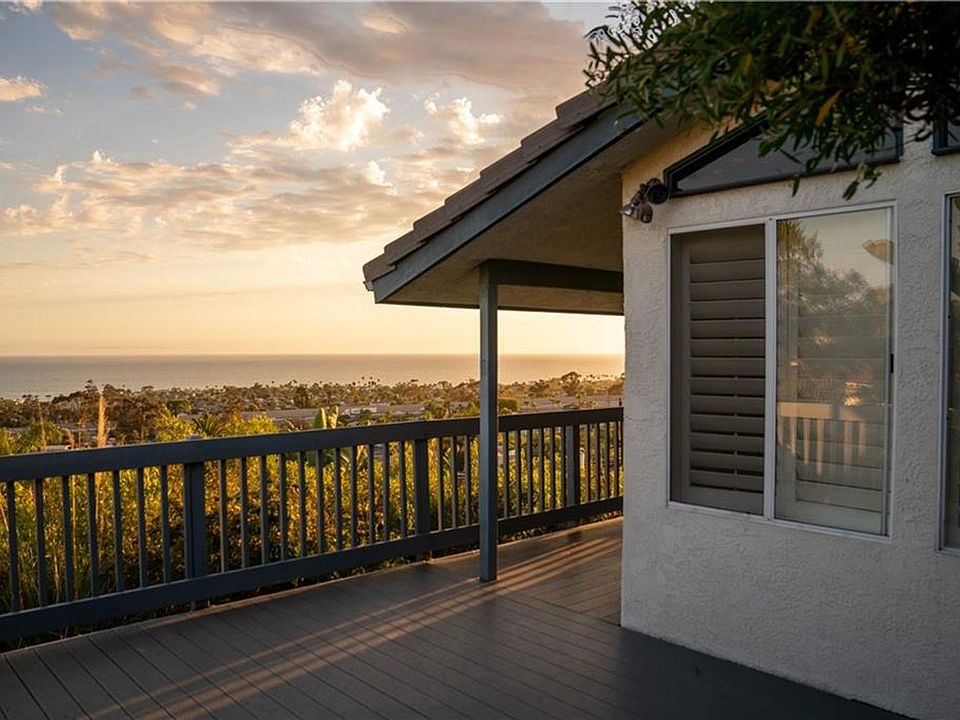 THIS SPECTACULAR HOME & COMPLETELY SEPARATE, LARGE GUESTHOUSE offer endless, unobstructed panoramic ocean views. Both properties are completely turn-key, with views from almost every room. Perched high at the end of a cul-de-sac, each features entertaining decks to enjoy the breathtaking ocean & sunset views. The main house offers 3 BD, 2 BA and approx. 2,000SF of living space in this warm and inviting Split- Level Charmer. Living room has granite fireplace and maple hardwood flooring; formal dining room currently being utilized as a game room. Updated kitchen boasts granite counters and custom Brazilian cabinets with Travertine-like flooring. Master has walk-in closet and private bath featuring granite counters, dual vanities and full shower. The GUESTHOUSE: 1 BD, 1 BA extremely upgraded guesthouse features approx. 900SF of open concept living space with beautiful stacked stone fireplace & travertine-like flooring, vaulted ceilings, wood beam accents and skylights throughout. Stunning kitchen has granite countertops, stainless steel appliances and ample storage. Spacious bedroom has a full bath adorned with granite. Guesthouse has attached 1-car garage & Main house has a detached 2-car garage. Don't miss the beautiful sunset views!