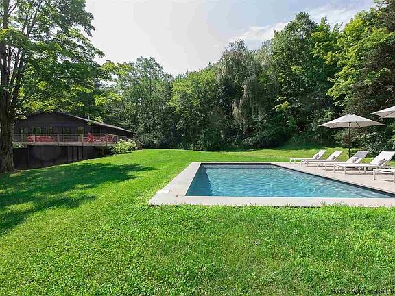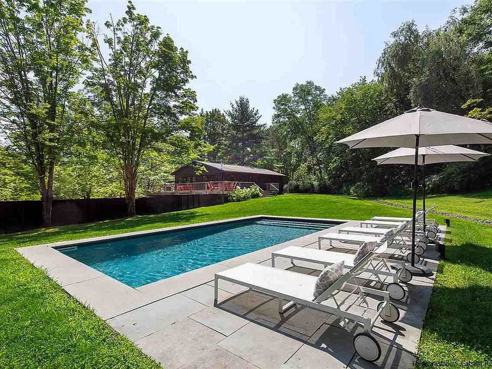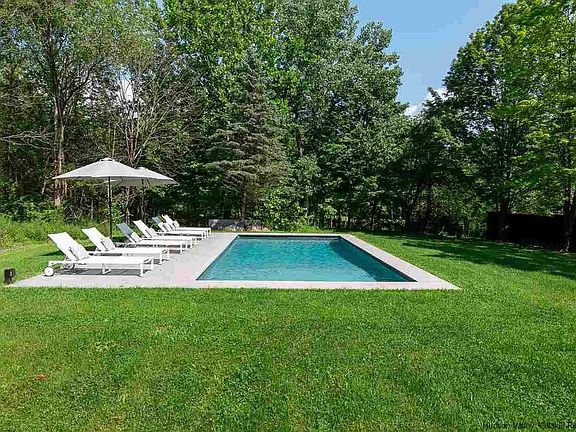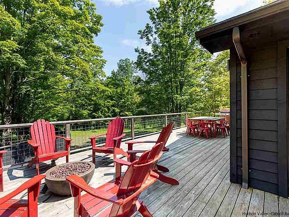 This meticulously renovated modern ranch sits on 8 peaceful acres on beautiful Bakertown Road in Accord and is within easy walking distance of the famed Westwind Orchard and award-winning Arrowwood Brewery. The site offers a nice mix of woods and open lawn, within which the owners have set a 15' x 30' heated saline pool. With a deck that wraps around three sides of the home, and is accessed via walls of glass, this is a home that's ideal for entertaining in all seasons, both indoors and out. The generously proportioned great room with vaulted shiplap ceilings includes an enviable kitchen with a large island and marble countertops, dining area that can seat plenty of guests, and a living room with a free-standing gas fireplace. The primary bedroom suite includes a spa-like marble bathroom with tub and the two guest rooms share another beautifully outfitted bath with a large glass enclosed shower. The home's walk-out lower level offers plenty of room for storage and the option of creating more finished space and for a gym, office, media room or workshop. Other area destinations include the new Inness Hotel + Restaurant, Minnewaska State Park, Mohonk Preserve and nearby Kingston, Woodstock and New Paltz.