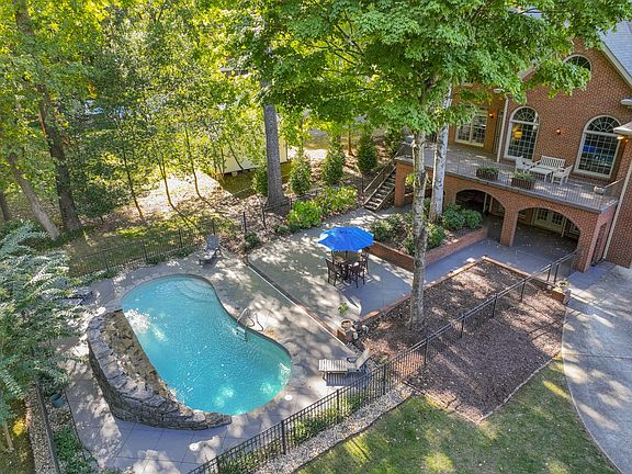 The seller did an exquisite remodel before learning of job relocation! NEW roof, iron front doors, kitchen upgrade including quartzite countertops, wine frig, secondary frig drawers & SILGRANITE sink. New lighting & paint throughout, ALL bathrooms remodeled w/quartz, 2 new high-efficiency HVAC units, landscape lighting front & back, arborvitae trees, variable speed pool pump, french drain...all since purchasing. It sits on a private, fenced, treed lot with beautiful patios and a 30' pool w/stone coping, waterfall & safety cover. full irrigation system, large workshop, and walk-in attic are addt'l features. The kitchen is a dream w/Dacor, Bosch, DCS, KitchenAid appliances plus European buffet.