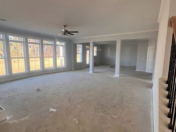 Welcome to New Haven! The 4000-2 floor plan with Faircloth Homes offers 5 bedrooms and 4 bathrooms. This plan offers a stunning dining room with a bay window and coffered ceilings. An office space with a bay window and french doors, and a stunning great room with a bowed wall of windows! A gourmet kitchen with granite countertops, tile backsplash, double wall ovens and cook top. A large pantry and a bedroom with one full bathroom complete the downstairs. Upstairs offers a large loft with the bowed wall of windows that match the great room below. The spacious Primary bedroom has an electric fireplace and sitting area. The Primary bathroom has tile floors with separate tile shower, tub and large walk-in closet. 3 secondary bedrooms upstairs. One of the bedrooms has an ensuite bathroom. The laundry room and another full bathroom complete the upstairs. 2-inch faux wood blinds, gutters on the front and back of the home, irrigation, rear concrete patio cover with fan.