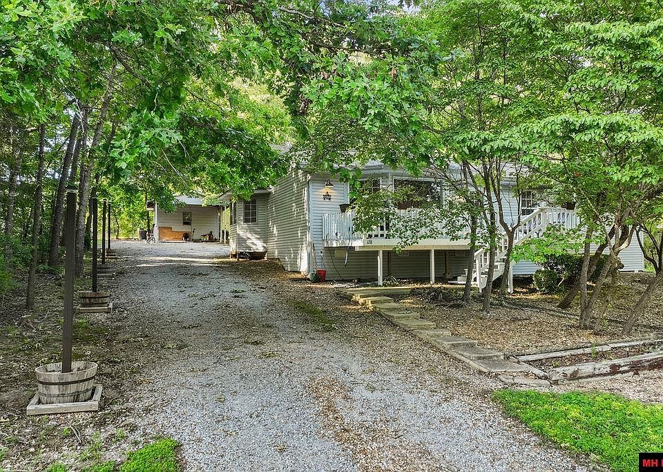 Welcome to 128 Blue Cedar Drive in Bull Shoals, Arkansas! This charmingly remodeled 3 bedroom, 2 bathroom home offers an inviting open concept layout, perfect for modern living. You'll love the abundance of natural light that fills every room. Recent updates include new flooring, appliances, and HVAC in 2019, as well as a new roof in 2017. The spacious carport and storage room/workshop provide plenty of space for your vehicles and hobbies. Situated on a nice shaded lot, this home offers plenty of space for playing and relaxing. Convenient laundry in the primary ensuite. Located near Bull Shoals Lake and the White River, this home offers fishing families the perfect blend of comfort and convenience. Come see for yourself and make this house your new home!